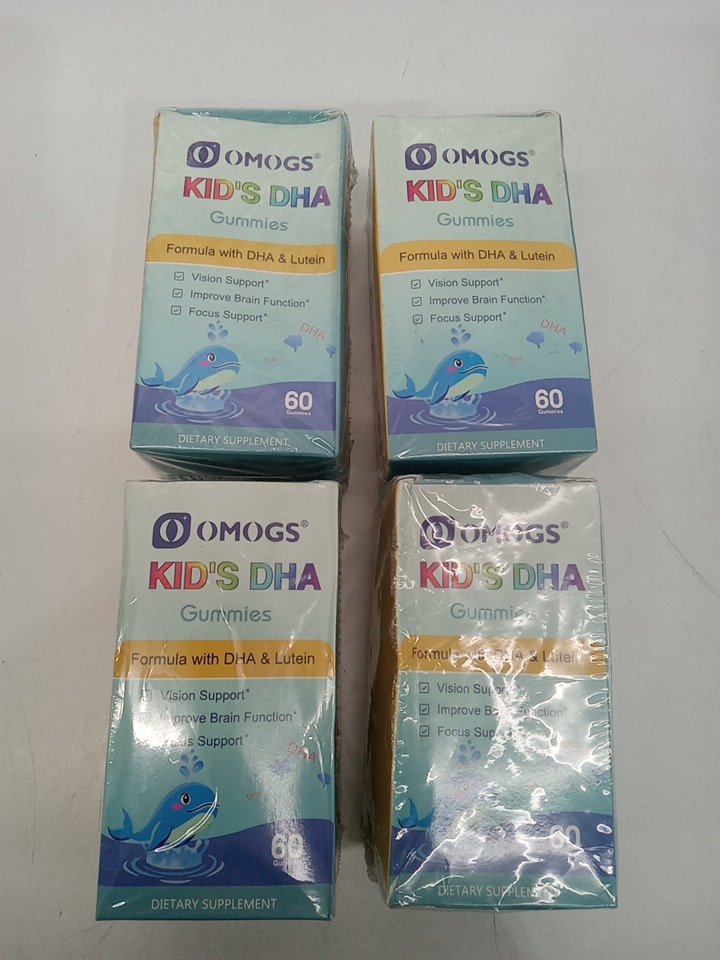 4 (60 Gummies) Kid's Omogs DHA Gummies - formula with DHA & Lutein for vision, brain and focus support