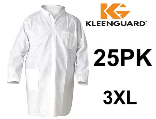 25PK KLEENGUARD A20 BREATHABLE PARTICLE PROTECTION LAB COATS - 3XL - WHITE (MODEL: 30930)