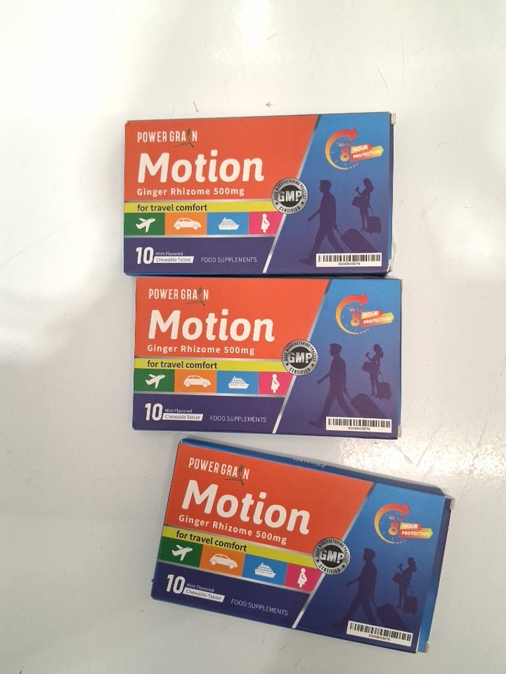 3( 10 CHEWS) POWER GRAIN MOTION GINGER RHIZOME FOR TRAVEL COMFORT - 500MG EACH - MINT FLAVOUR