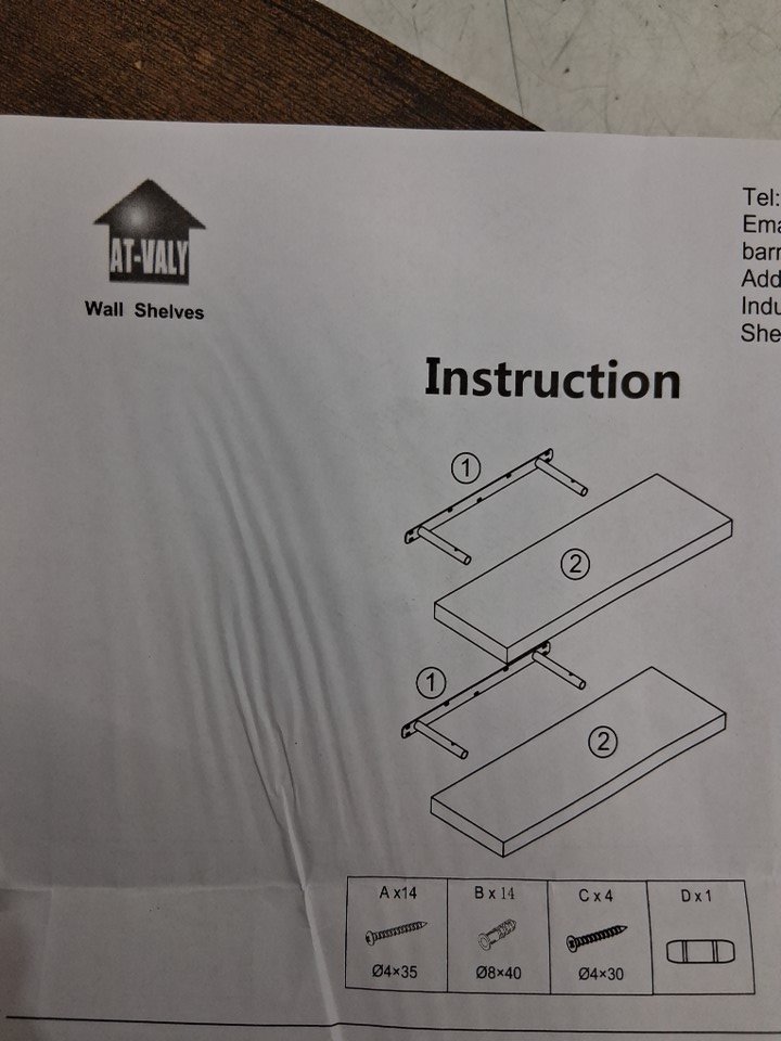 *GENERIC CONDITION STATEMENT* Additional generic hardware may be required for full assembly / installation. Generic hardware may include (but not limited to) screws, bolts, nuts, washers, power adapters / cables, HDMI cables, batteries, etc.