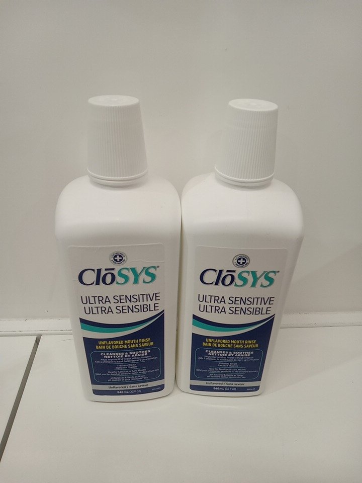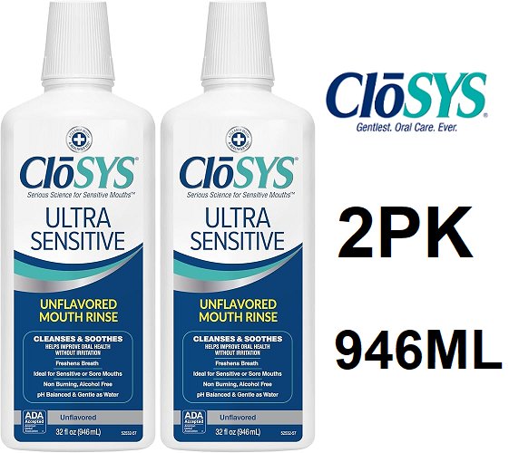 2PK CLOSYS ULTRA SENSITIVE MOUTH RINSE - CLEANSES AND SOOTHES, FRESHENS BREATH - 946ML EACH - UNFLAVOURED
