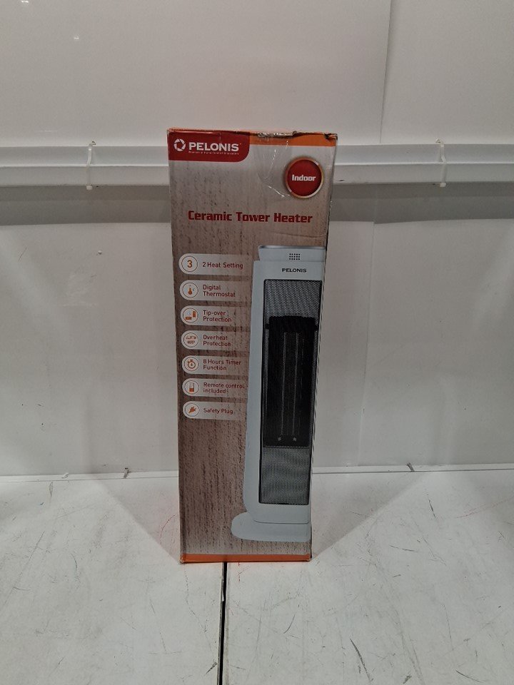 PELONIS Oscillating Ceramic Tower Space Heater with Remote & Thermostat - 23" x 7" - 1500w - WHITE - (model: PHTPU1501WC)