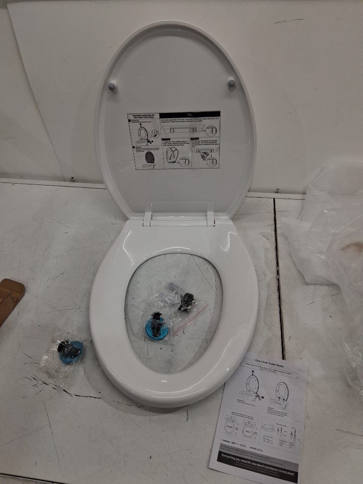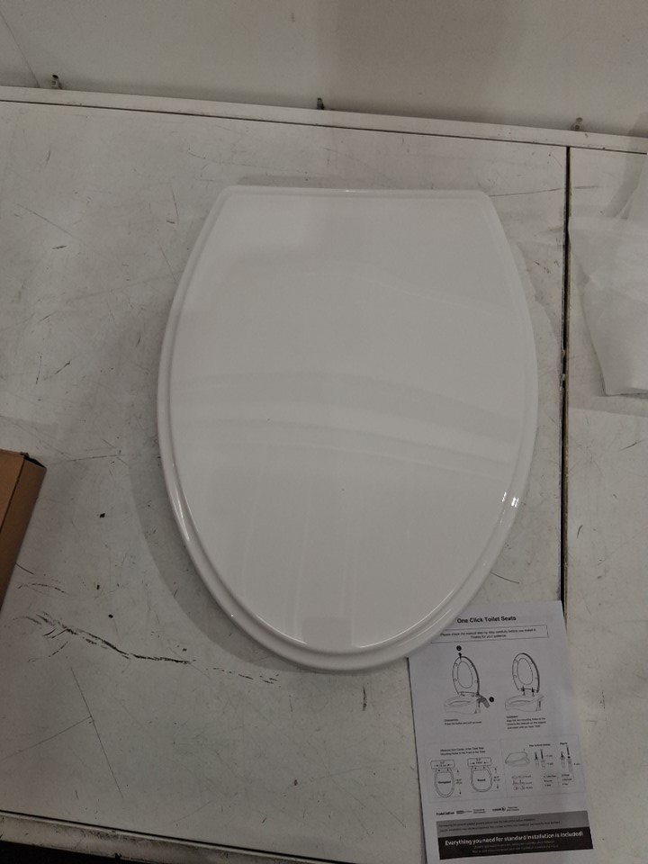 HIBBENT PREMIUM ONE CLICK ELONGATED TOILET SEAT WITH COVER - OVAL - EASY INSTALL AND QUICK RELEASE SEAT FOR EASY CLEAINING - SOFT CLOSE - 18.5" LENGTH - WHITE (MODEL: 1CLICK40V)
