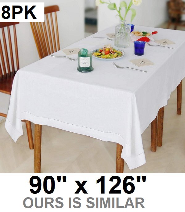 8PK Rectangular Tablecloth WITH ROUND EDGES - 90" X 126" - WHITE