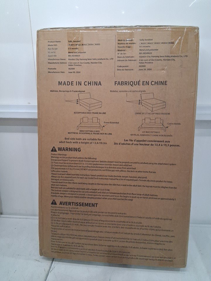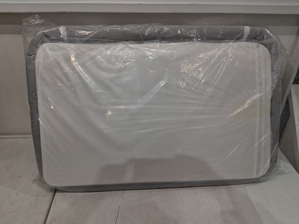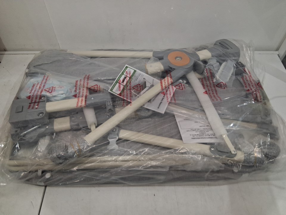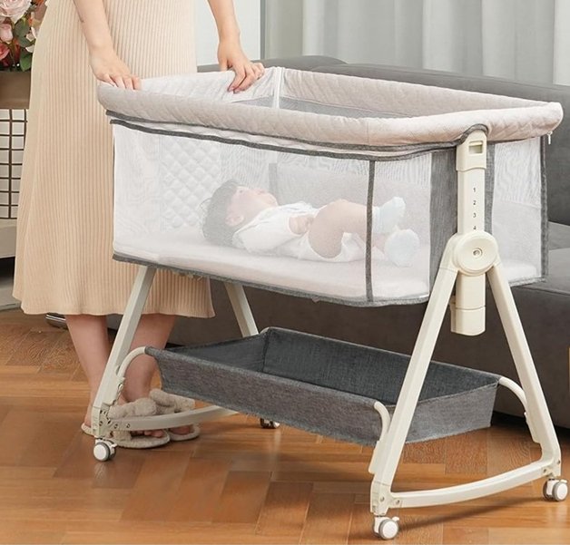 PORTABLE MESH BABY BASINET WITH ADJUSTABLE HEIGHT, WHEELS, STORAGE BASKET - 35.6" × 21.1" × 27.2" - UPGRADE GREY/beige
