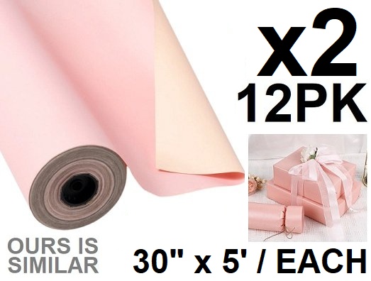 2 (12pk) cindus gift wrap wrapping paper (24 TOTAL) - 30" x 5FT (12.5 SQFT) - bombay pink