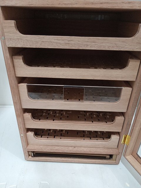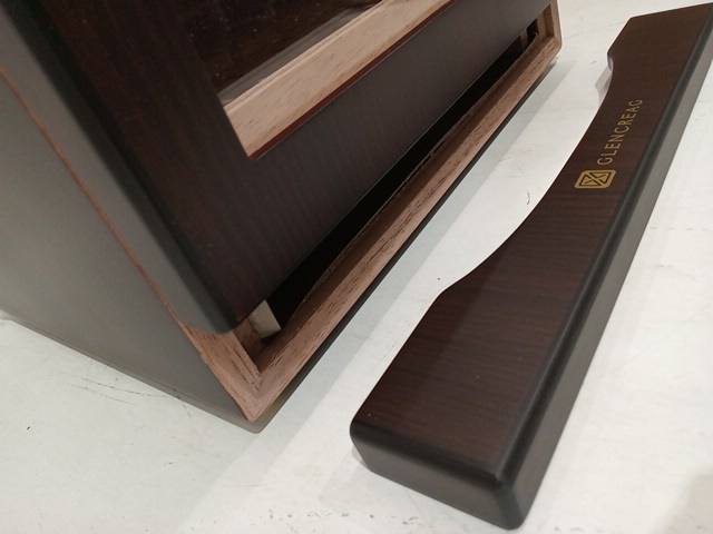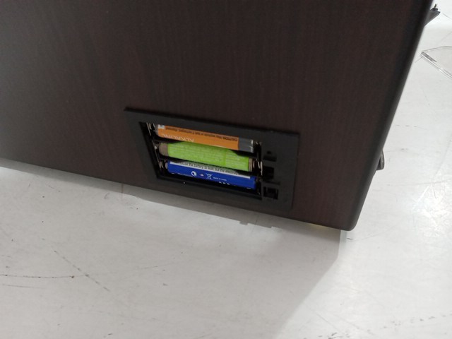 the bottom wood piece where the logo is broken off. seems as if it can be fixed. there is a dent on the back side appears to be from shipping. tested for power.