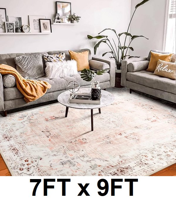 mujoo large rectangular boho theme washable area decorative rug - 7ftx9ft- pink/ white