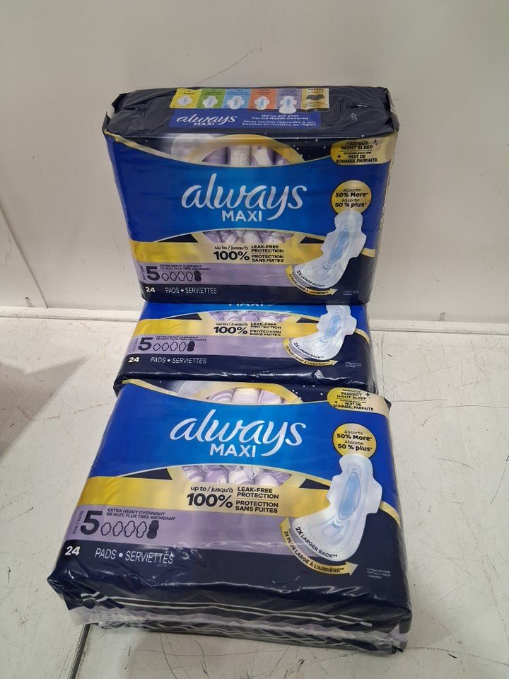 72PK Always Maxi Pads Extra Heavy Overnight with wings - Size 5 (model: 07737)