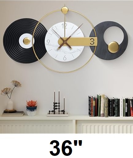 YIJIDECOR Decorative Wall Clock - 36" x 21" - gold/black/white