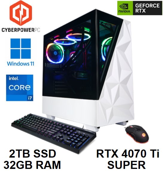 CYBERPOWERPC GAMING PC - Intel Core Processor i7-14700KF, GeForce RTX™ 4070 Ti SUPER 16GB GDDR6X, 32GB DDR5, 2TB PCIe GEN4 SSD, Windows 11 home - white - (model:et99619-1790)