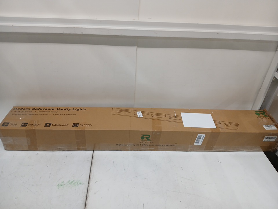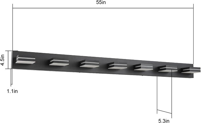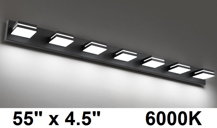 sinerise modern led 7-light bathroom vanity light fixture - 55" x 4.5" 6000k - black (model: 9553e-7t)