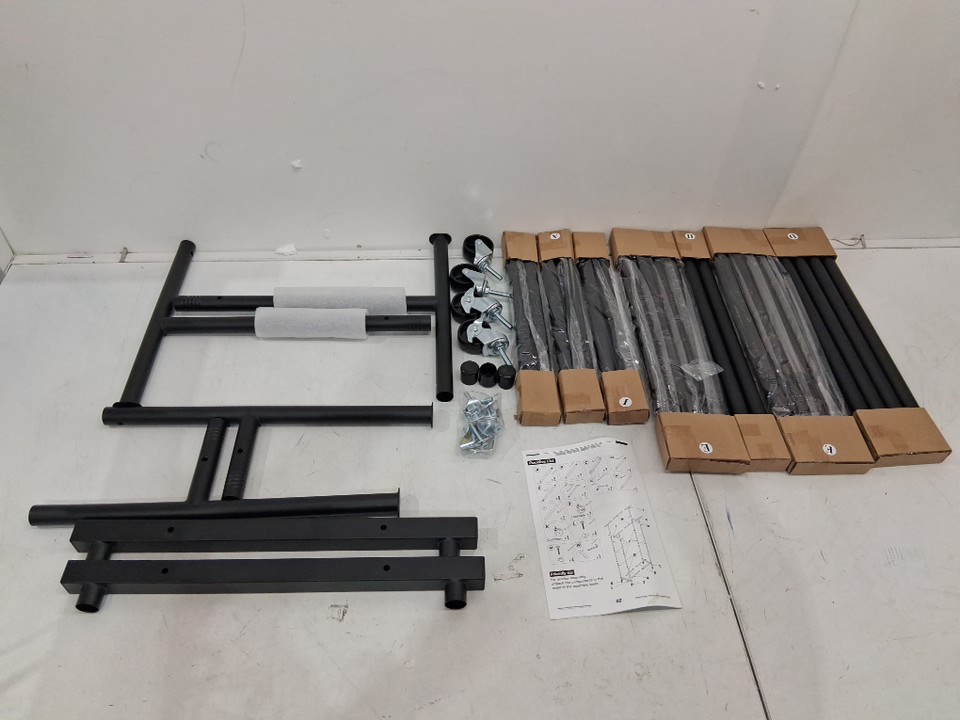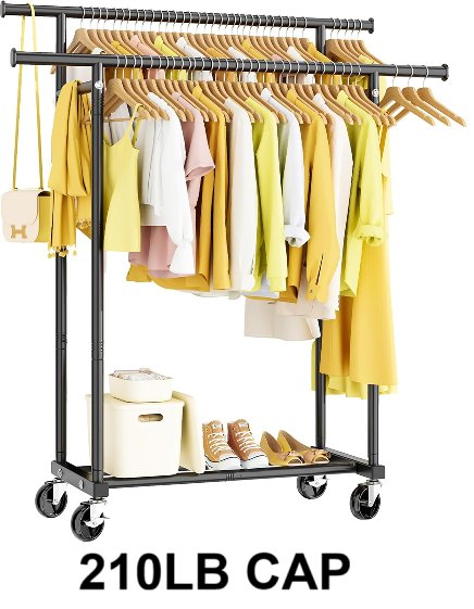 HYSEYY DOUBLE ROD GARMENT RACK WITH WHEELS - 210LB CAP - BLACK (MODEL: ‎HY-1315)