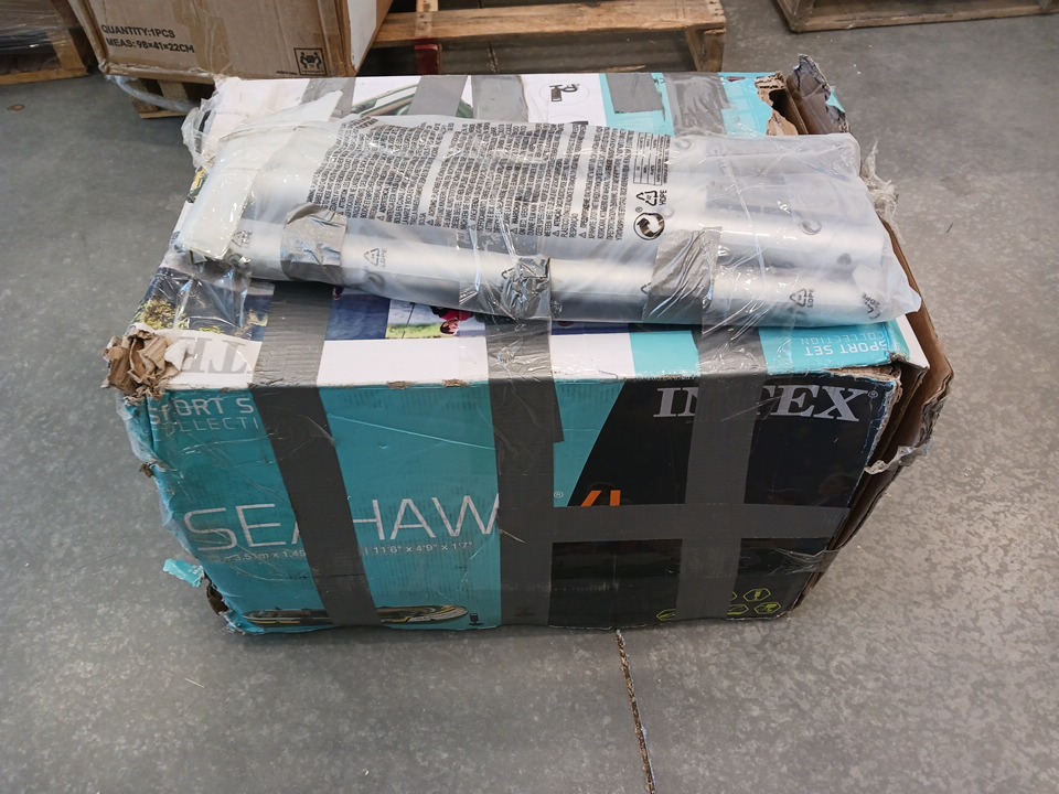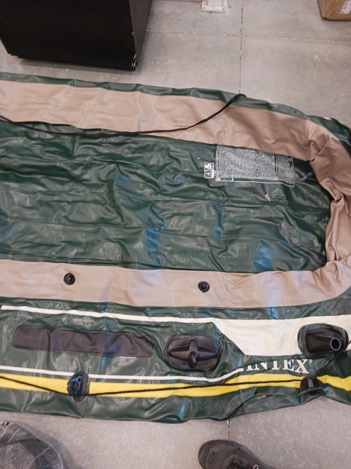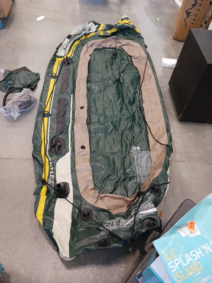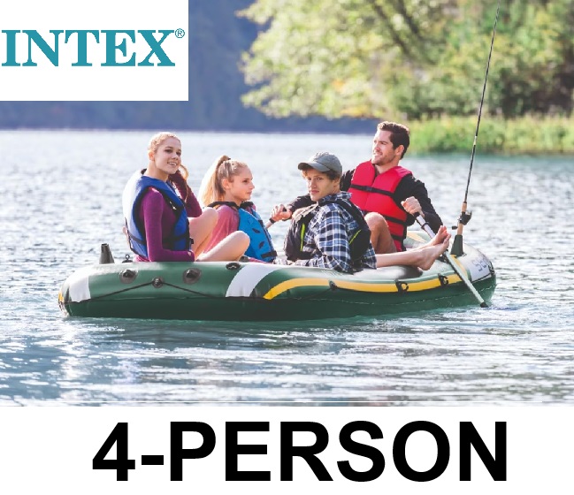 Intex Seahawk 4-Person Inflatable Fishing & Recreational Boat Set with Aluminum Oars, High-Output Air Pump, I-Beam Floor, Motor Mount, Repair Patch Kit and Durable Puncture-Resistant PVC - Green (Model 68351EP)
