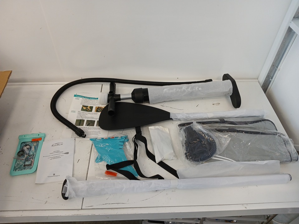 the paddle board only shows light signs of use, accessories are still in like new condition.