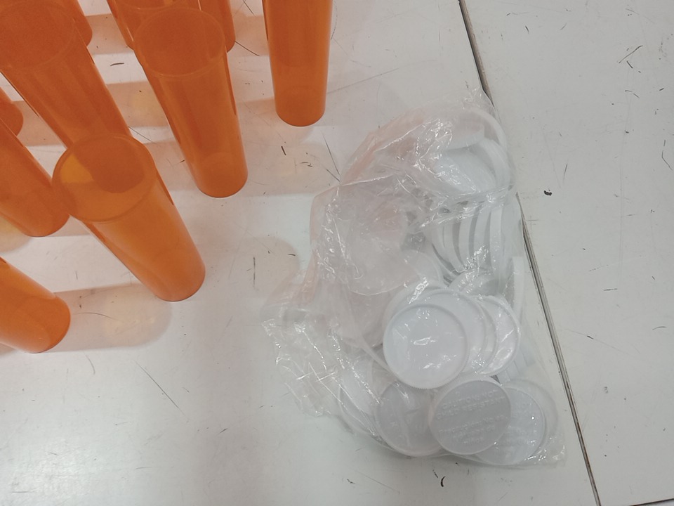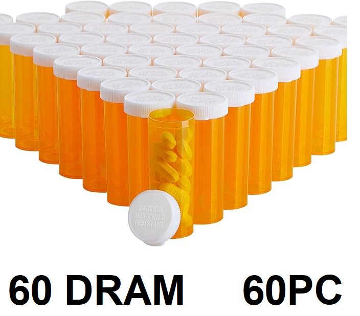 60pc Empty Plastic Pill Bottles with Easy Open Snap Caps (Not Child Resistant) - 60 dram (22ml) - orange/white