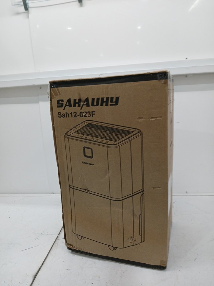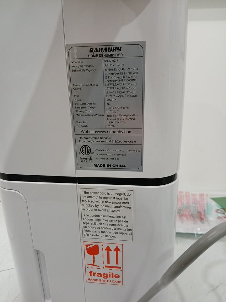 SAHAUHY 1500 SQ.FT PORTABLE DEHUMIDIFIER WITH DRAIN HOSE AND LED DISPLAY, 0.52 GALLON WATER TANK, 4-WHEELS - WHITE (MODEL: SAH12-023F)