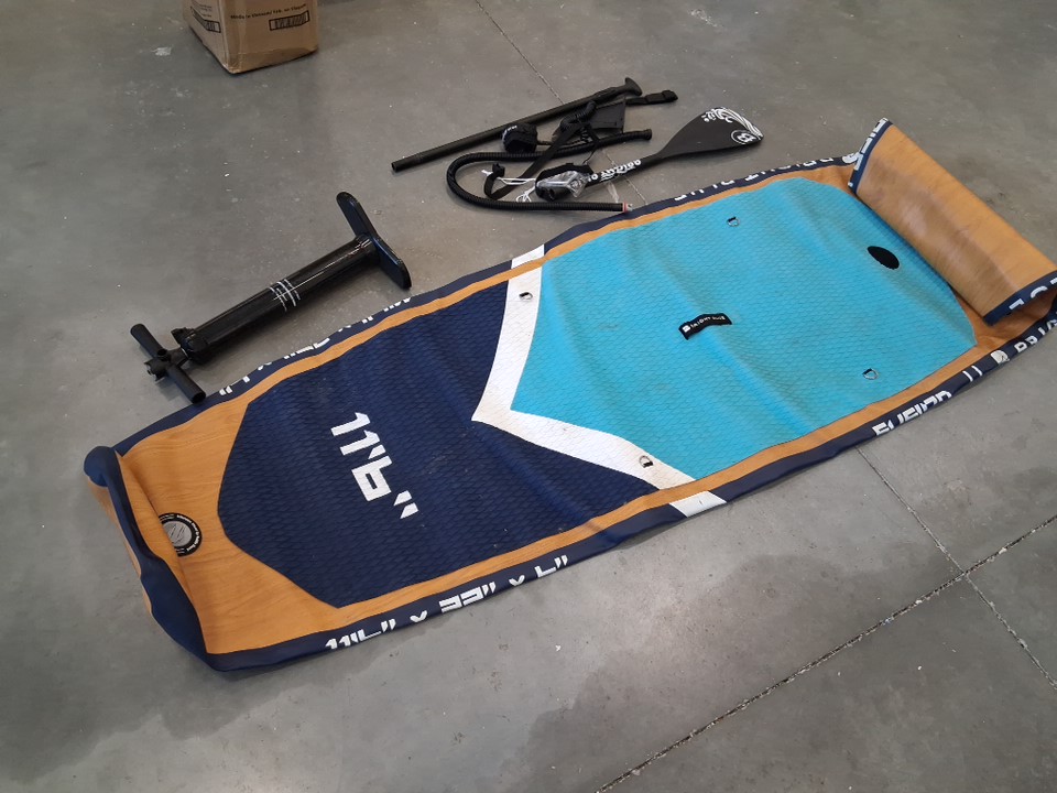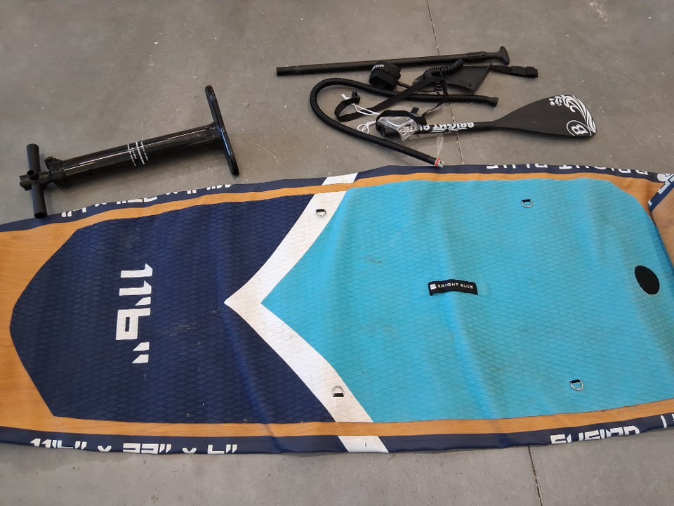BRIGHT BLUE REINFORCED DOUBLE LAYER INFLATABLE SUP BOARD WITH PUMP AND PADDLE 11FT 6''