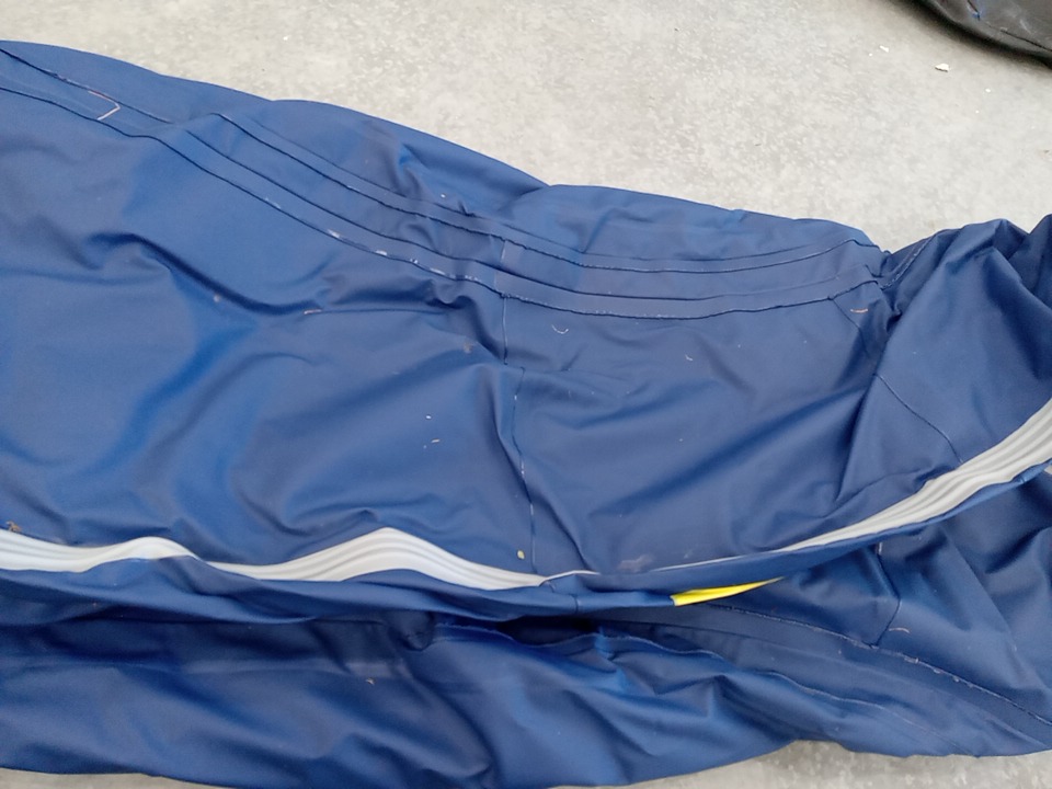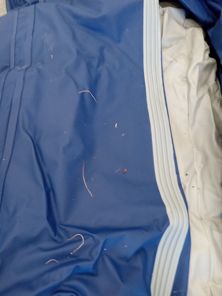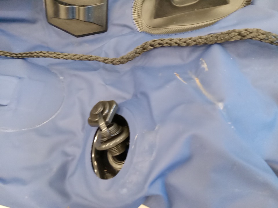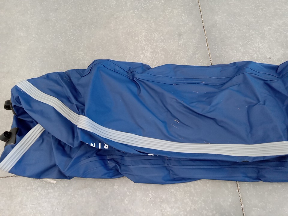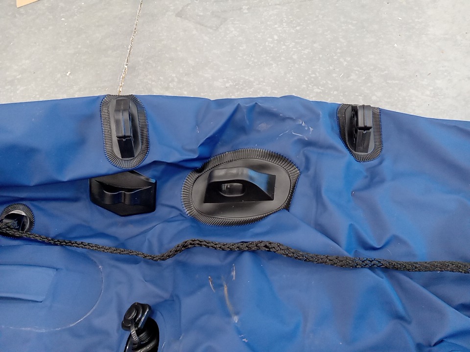 we have found a heavy amount of dirt on this item as well as a outdoor / dirt odor, this is due to previous heavy use, this item does not include a electric pump meaning we were unable to test the item to see if its capable to hold air, however despite the heavy dirt on this item their is no indicators that it would have issues with holding air ( meaning their were no cut or tears found on this item). their are some cuts and tears on the storage bag however. this item is also missing the awning / sun shade cover accessory that is seen on the manual, however this item does included accessories such as 2 oars, seat and motor mount. see photos below.