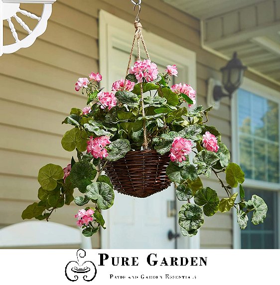 Pure Garden Faux Geranium Flowers, Hanging Natural and Lifelike Floral Arrangement with Basket - HOT PINK (MODEL: 50-LG1164)
