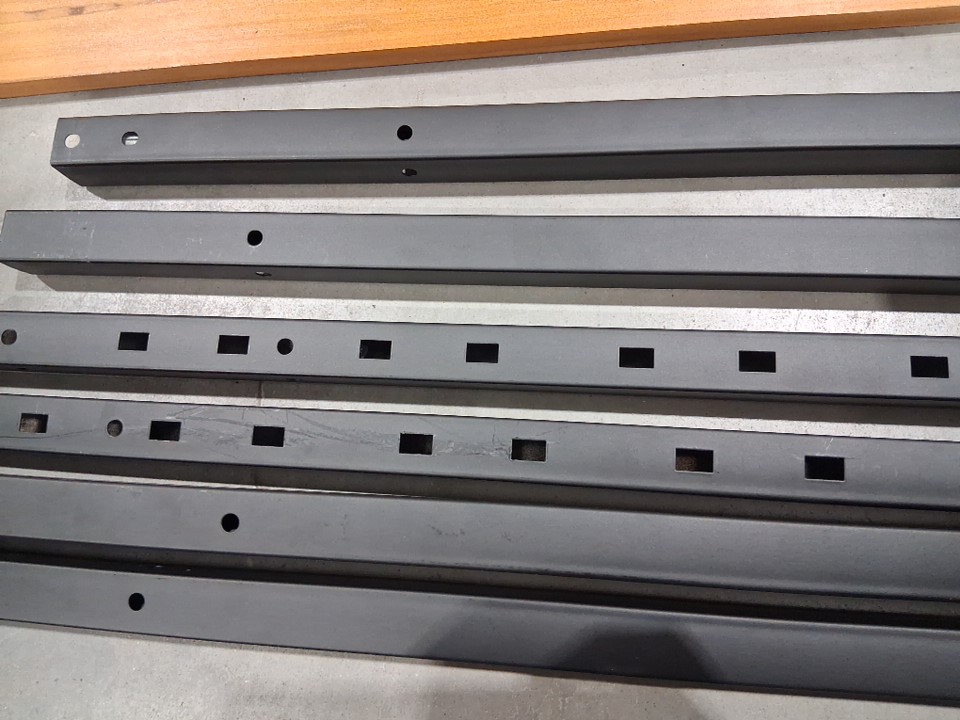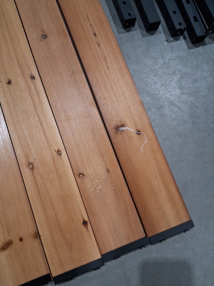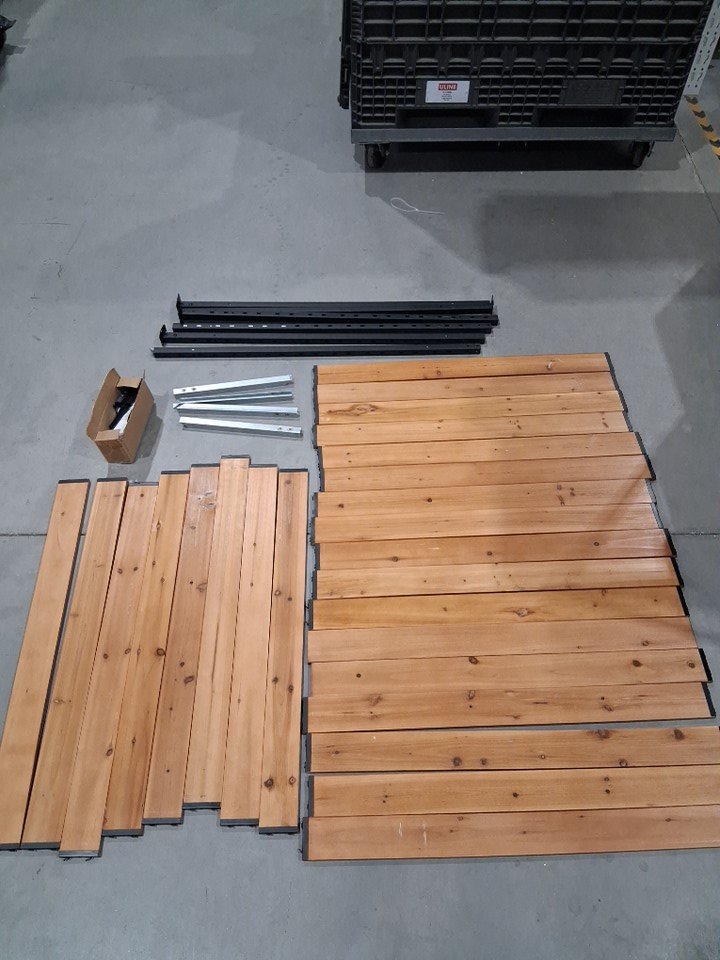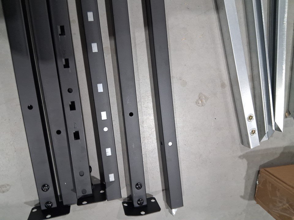 Privacy screen has signs of previous assembly; some panels and poles have scuffs and scratches on it, some poles have inserts inside of them, and some panels do not have end bracket on them