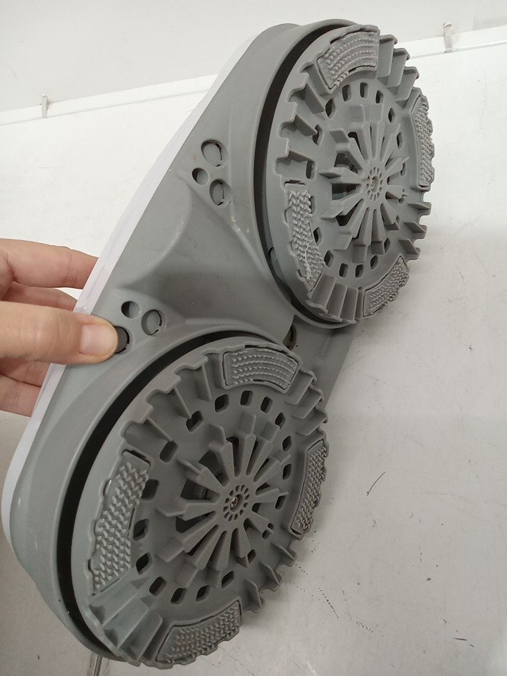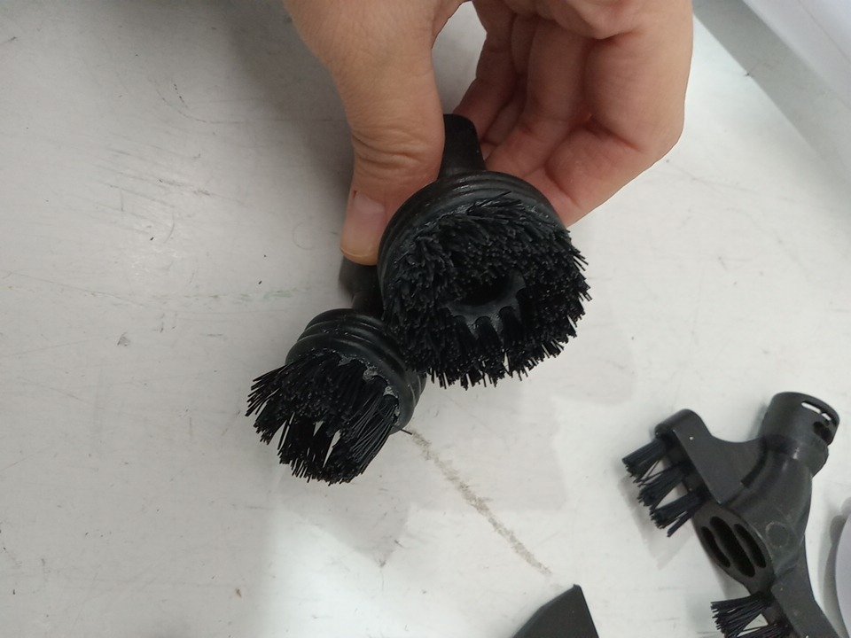 It is missing the round cloths, has dust stains and th piece inside the water container is loose. Tested for power only