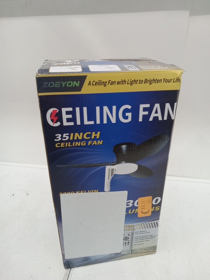 zoeyon ceiling mounted low profile hardwired remote control led light fan - 6 speed - 35" - black