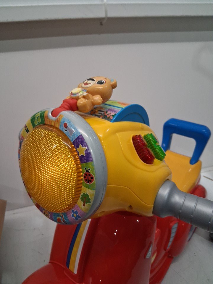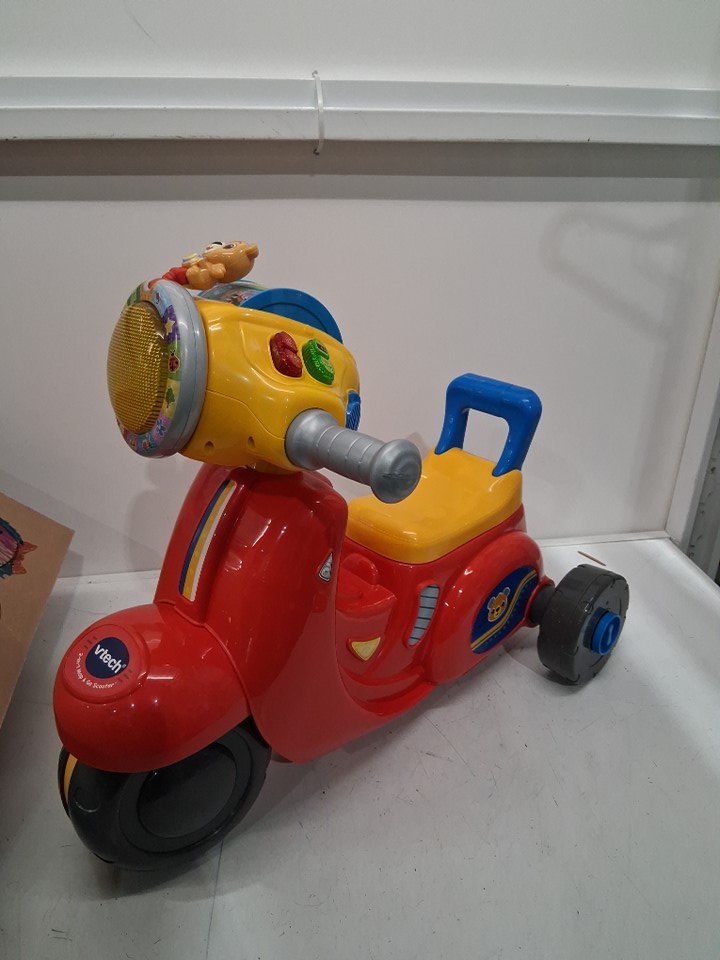 item came previously assembled without the factory box, some light use on wheels (see photo)