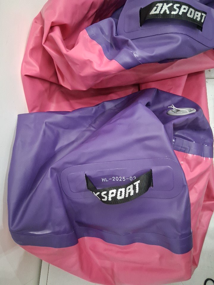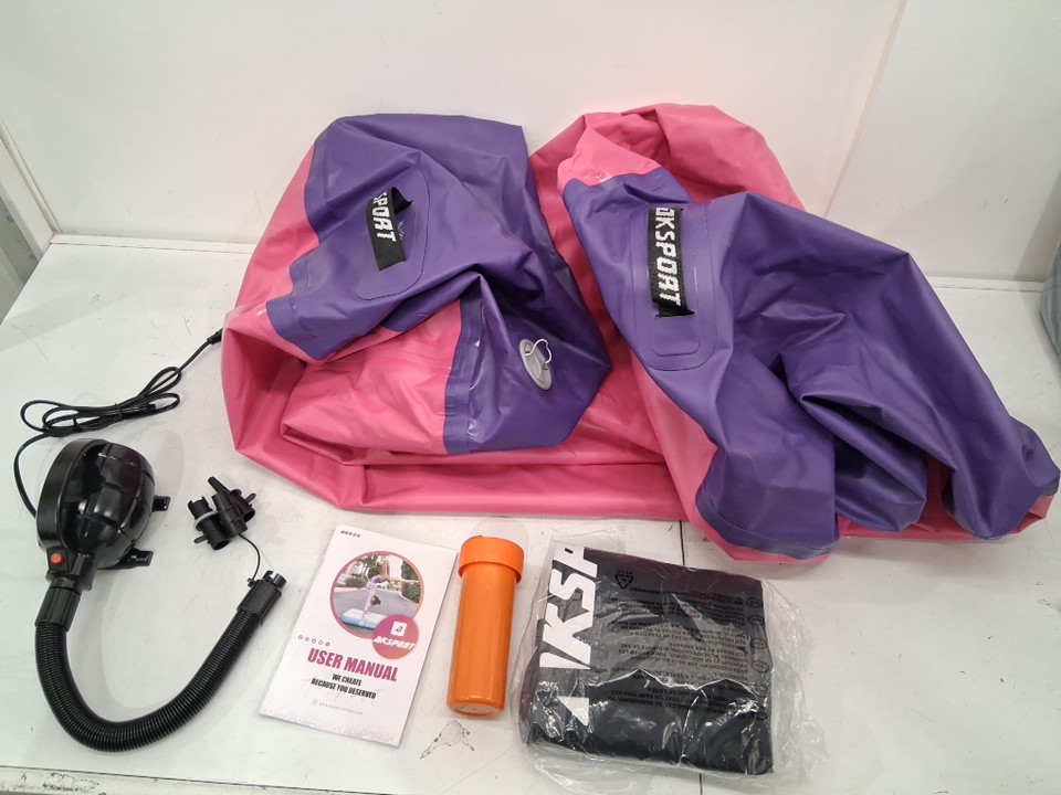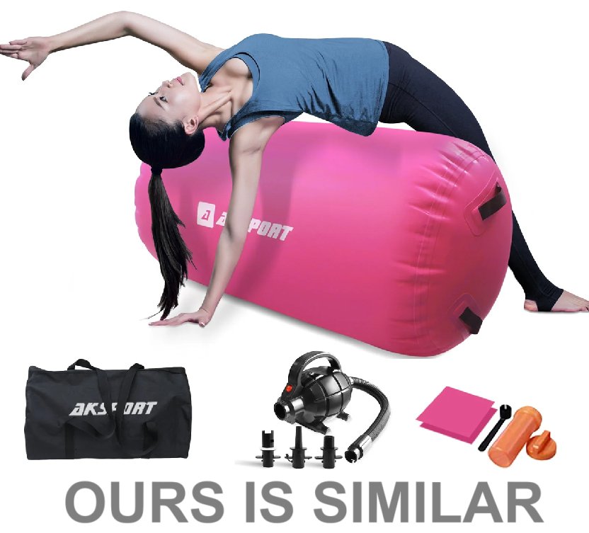 AKSPORT Inflatable Air Tumbling Roller Yoga Bolster Kit with Electric Air Compressor and Travel Bag - Pink/Purple (Model: HL-2025-03)