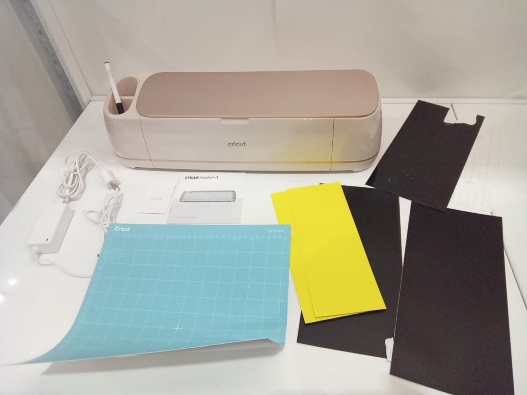Set is missing most accessories and only includes one of the black pens. Some vinyl sheets have been used lightly. Tested for basic power only. Please see photos.