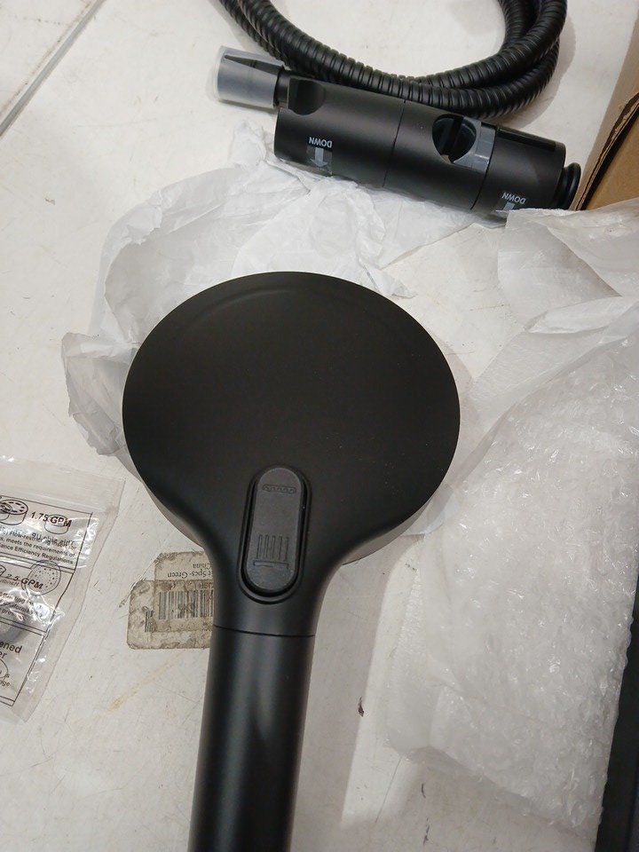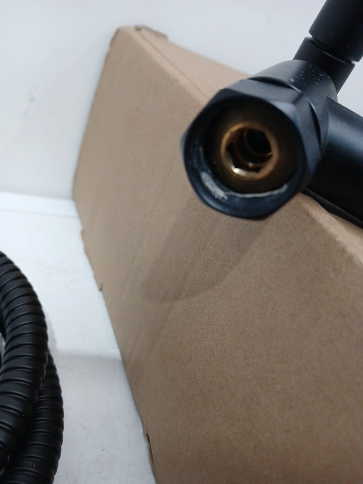 The shower arm shows signs og use due to tape inside connector.