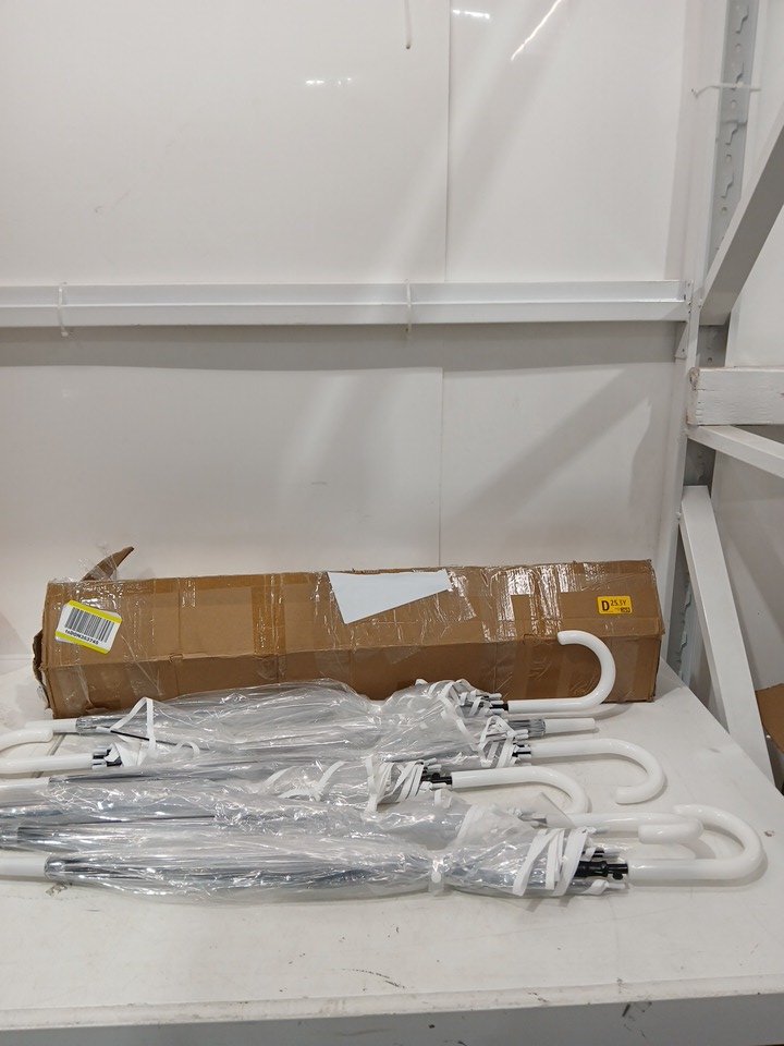 One of the umbrellas has a rust stain and another umbrella has a couple bent bars. These don't seem to affect function of the umbrella.