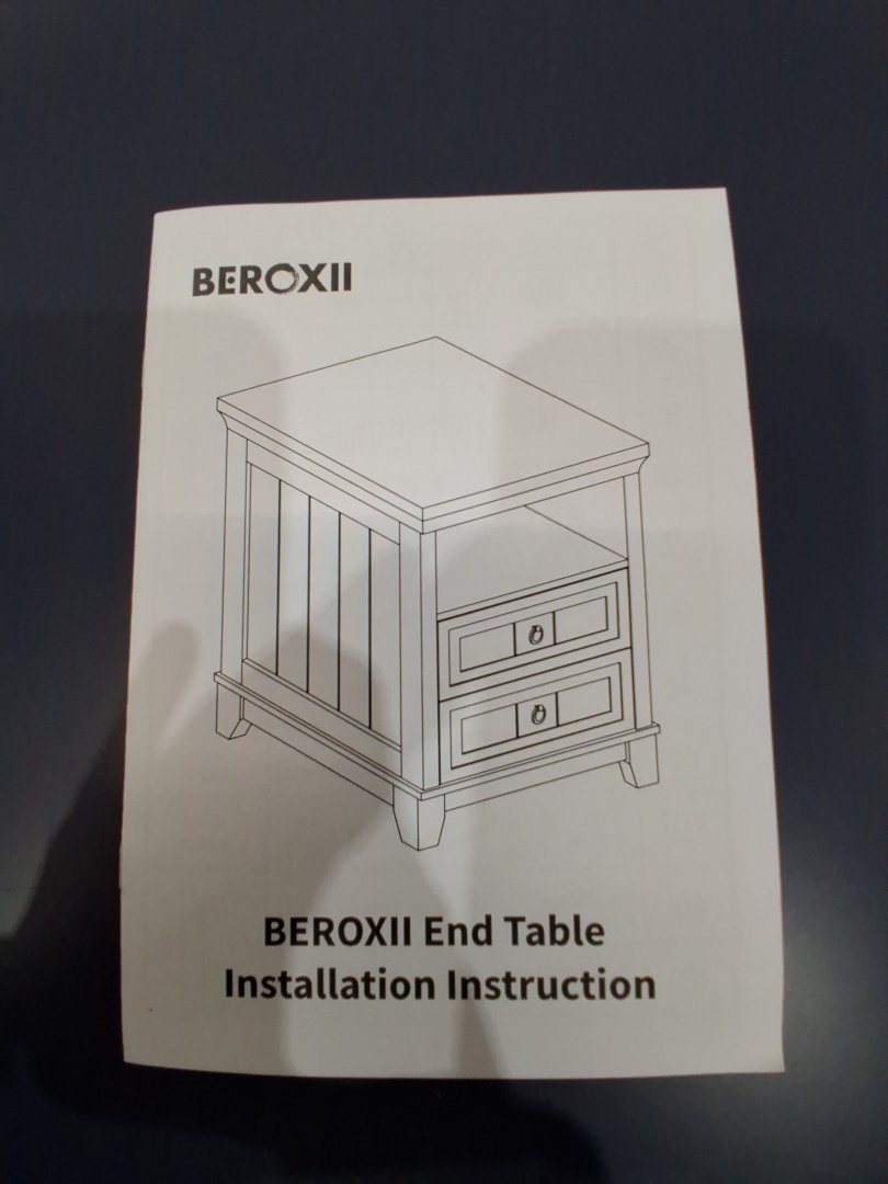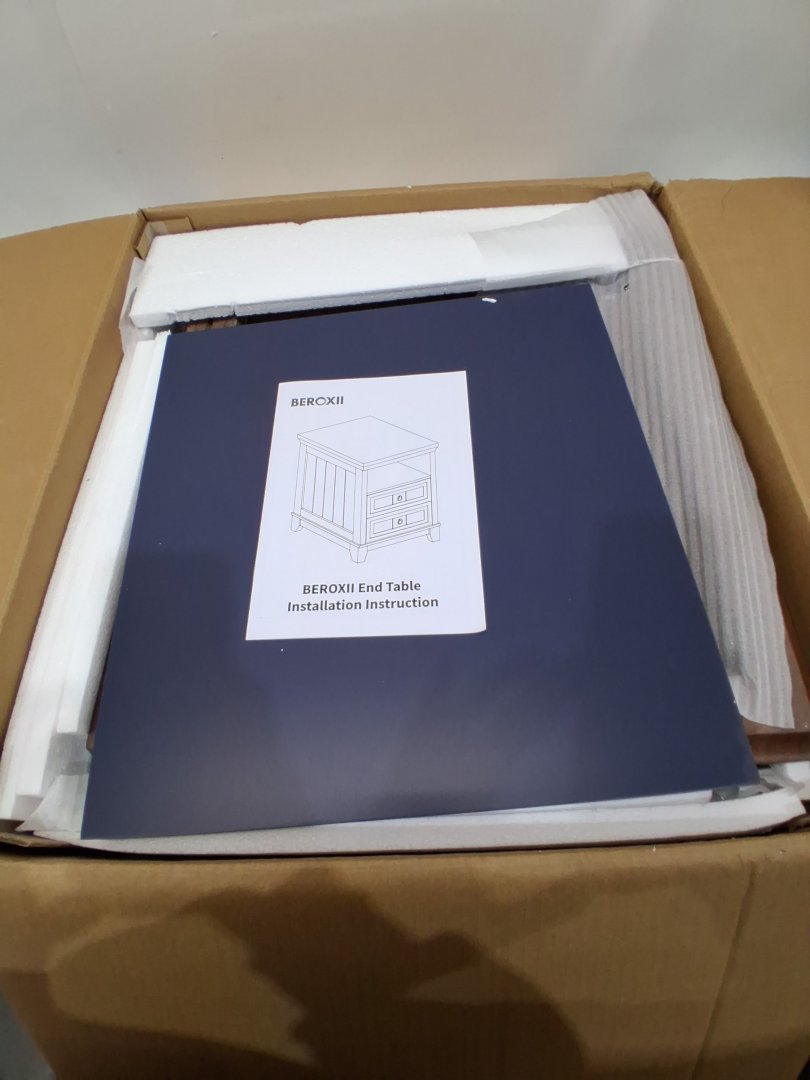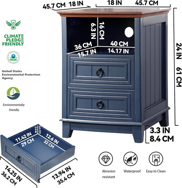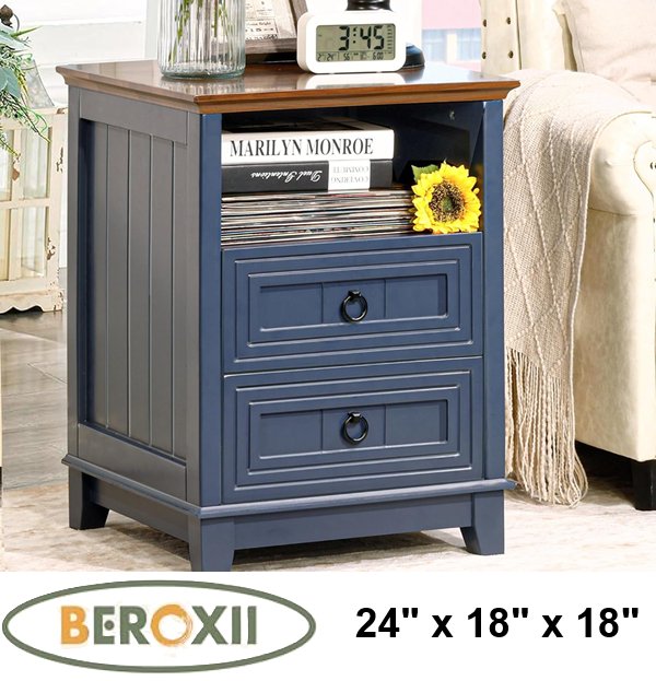 BEROXII Rustic Farmhouse Wooden End Table with 2 Drawers AND Open Shelf - 24" X 18" X 18" - BLUE/DARK WOOD (MODEL: EDTB-01BLUE)
