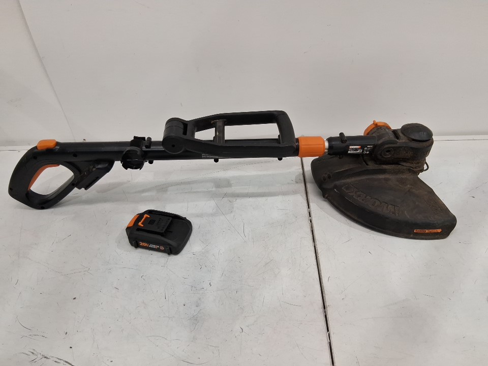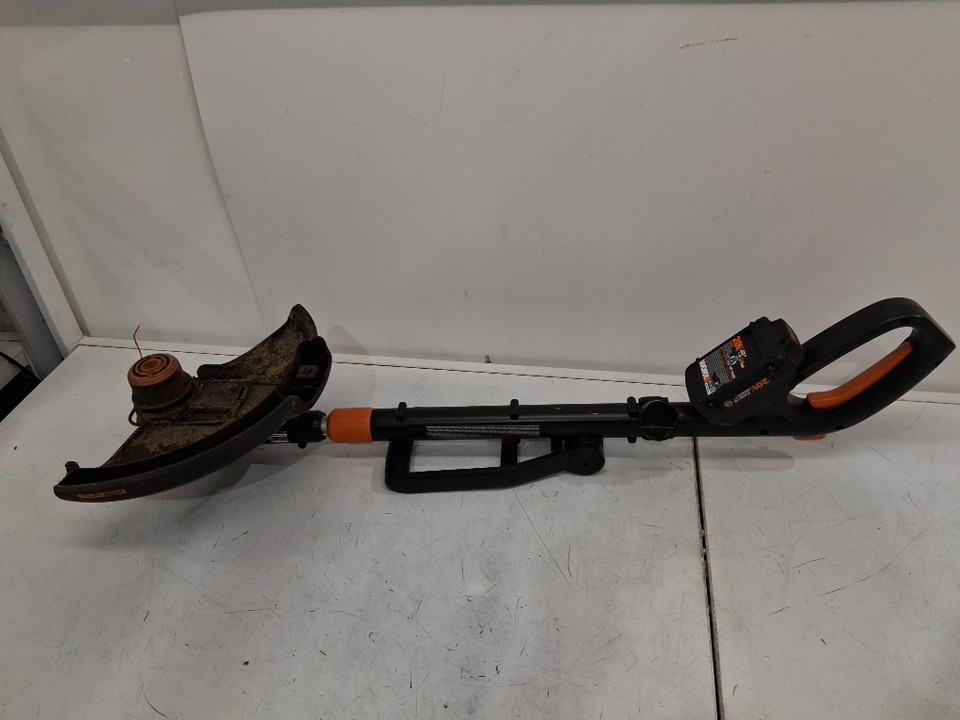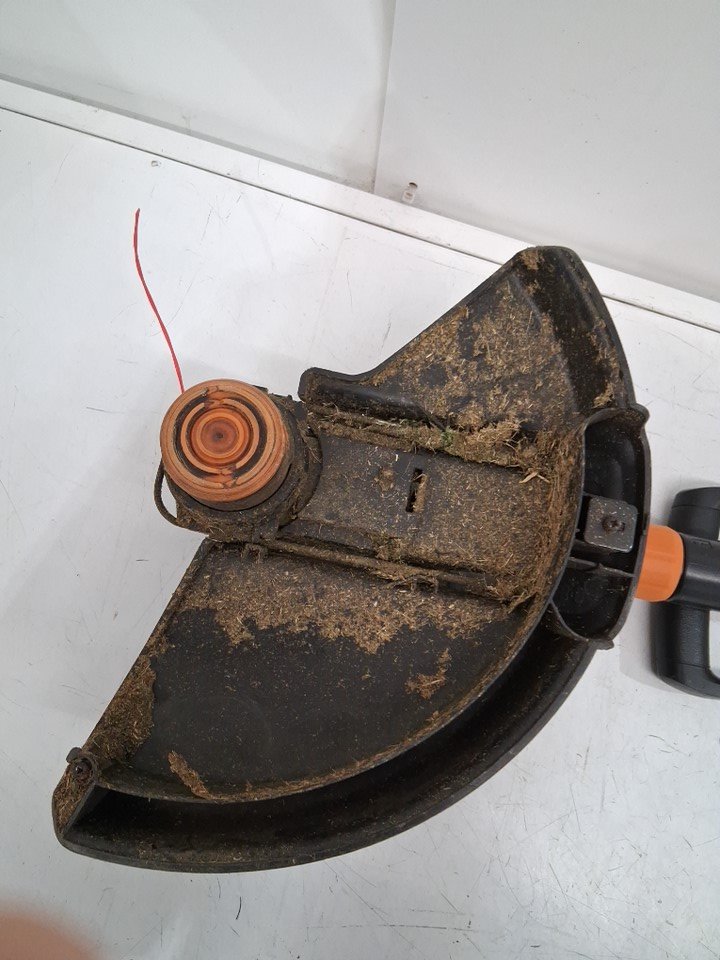 The item has grass debris on it indicate previous use. Also, has missing charge wheels and grass cutting strings. Please refer to the main image. Tested for working.