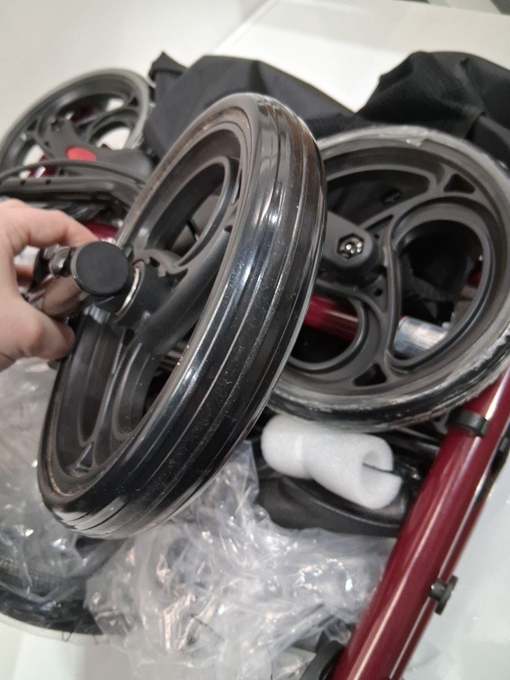 Item shows signs of previous use such as light dust/debris on two of the wheels.