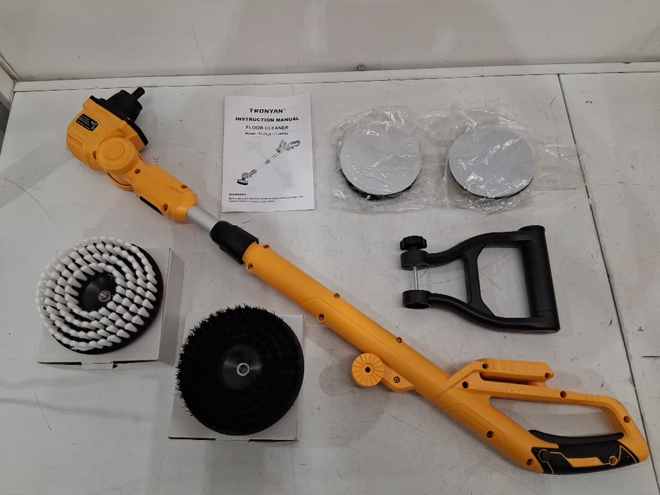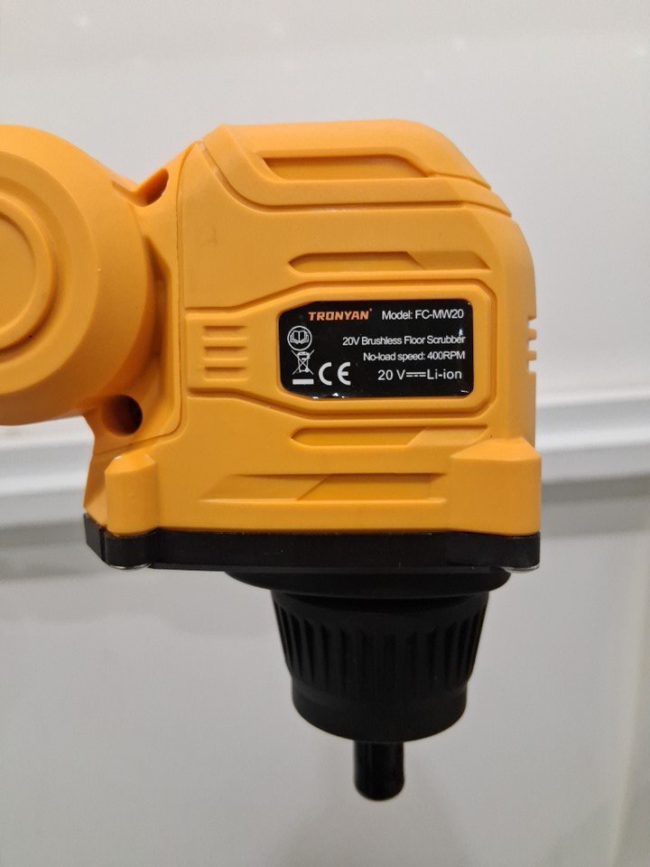 Tronyan Cordless Power Scrubber and Floor Cleaner with 4 Brush Heads - *TOOL ONLY* - Compatible with Dewalt 20V Max Battery - Yellow (Model: FC-DE20)