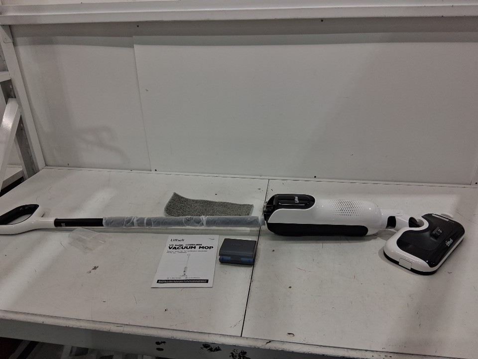missing 14 disposable pads, just washable pad is with mop, item was also tested for power with battery's, see photos.