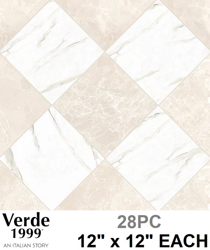 28PC VERDE 1999 ITALIAN MADE RAVENNA CHECKERBOARD WALL & FLOOR CERAMIC TILES - 12" X 12" EACH - WHITE , BEIGE (2 box item)