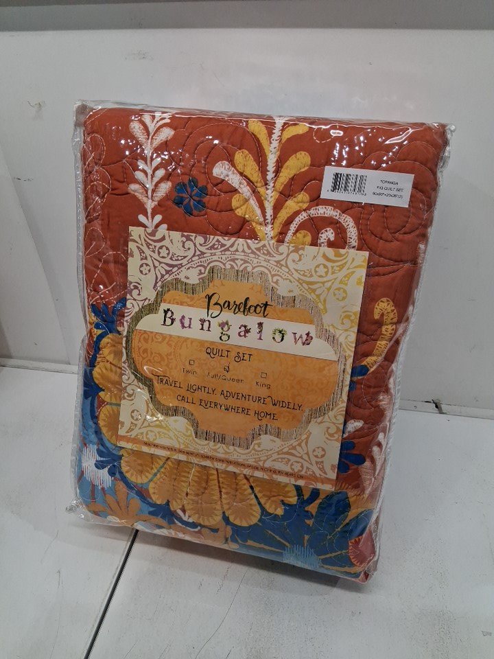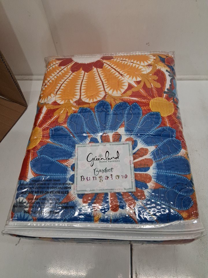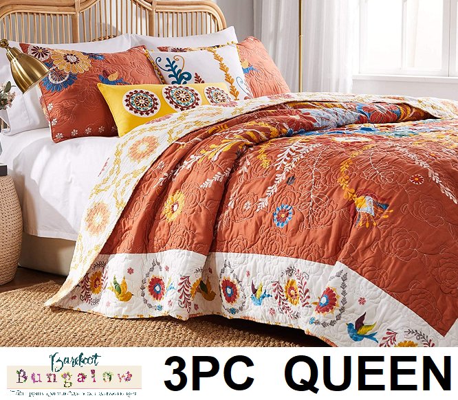 3PC BAREFOOT BUNGALOW TOPANGA QUILTED BED SET - QUEEN SIZE 90" x 90" - FLORAL/BIRDS