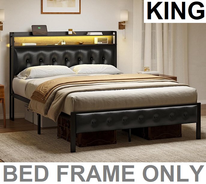 HAUSORCE upholstered bed frame and headboard with led lights and storage - king - black (model: hb045)
