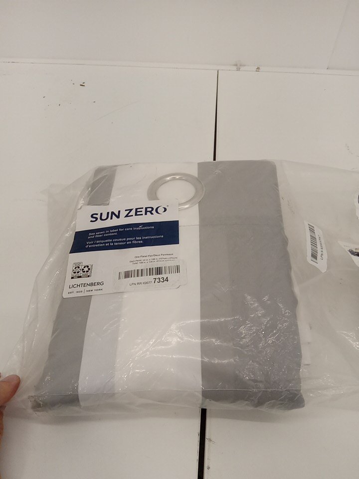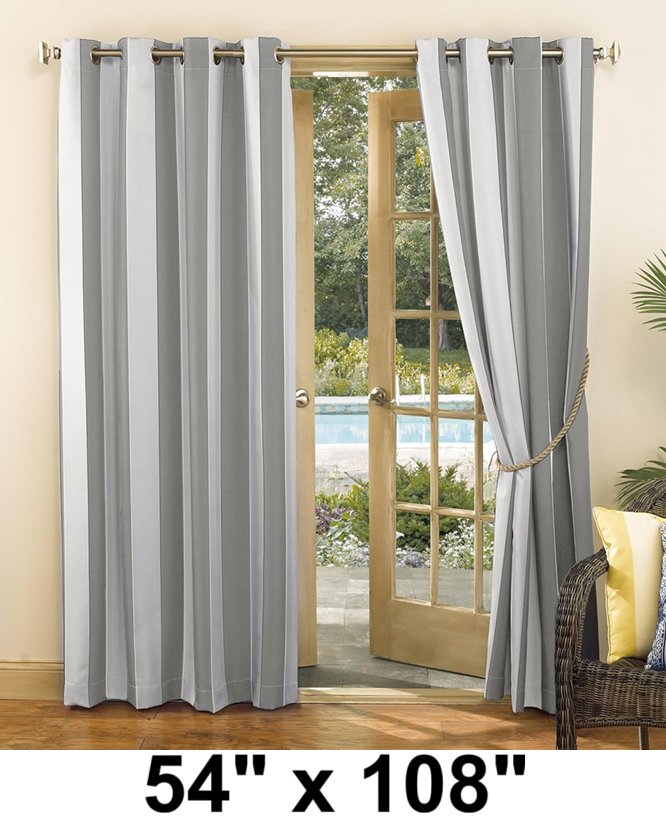 (2 Panel Set) Sun Zero Valencia Cabana Stripe Indoor/Outdoor UV Protectant Grommet Curtains - 54" x 108" - Grey/White