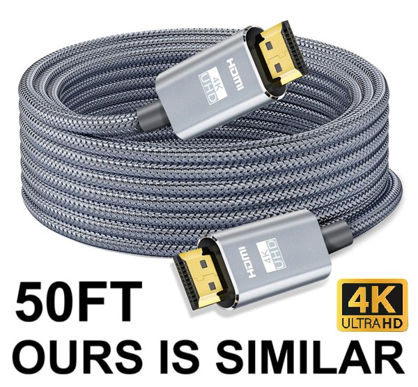Braided 4K High Speed HDMI 2.0 Cable - 50FT - Grey