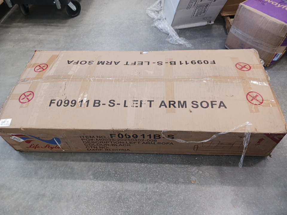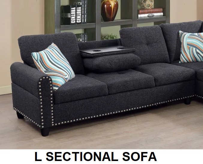 Lark Manor Budapest L-Shape Corner Sectional with Nailhead Trim Detailing, Tufted Back Cushions and Drop-Down Center Console with Dual Cup Holders and Hidden Storage Compartment - Black (Model: F09911B-S-LEFT)