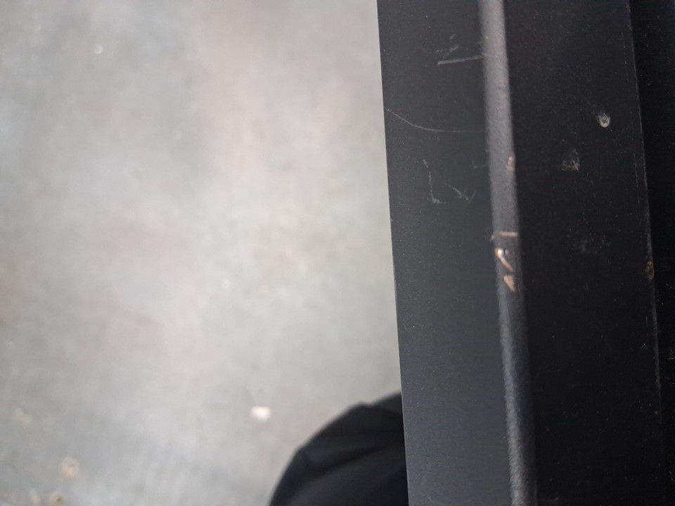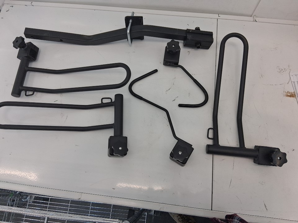 item has some small markings on it from previous use, as well as one of the tire holders is missing, item is also missing manual and some additional hardware may be required for assembly