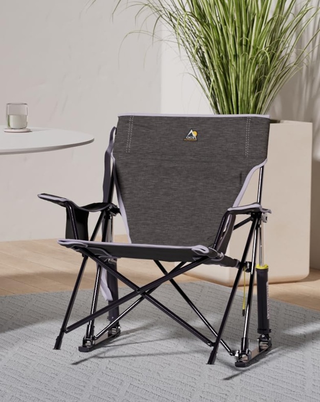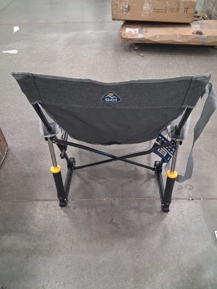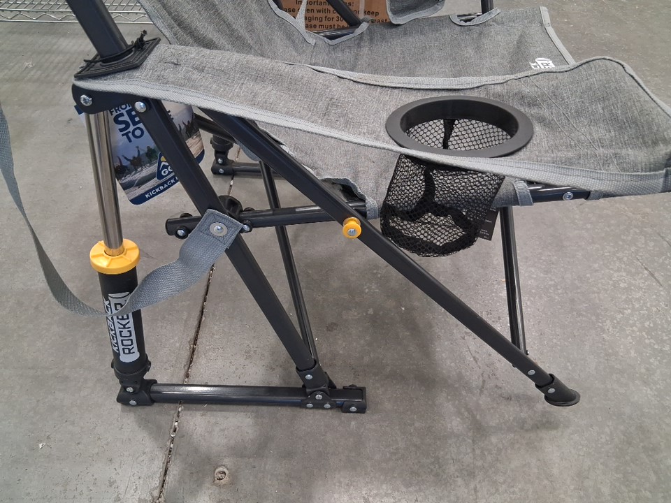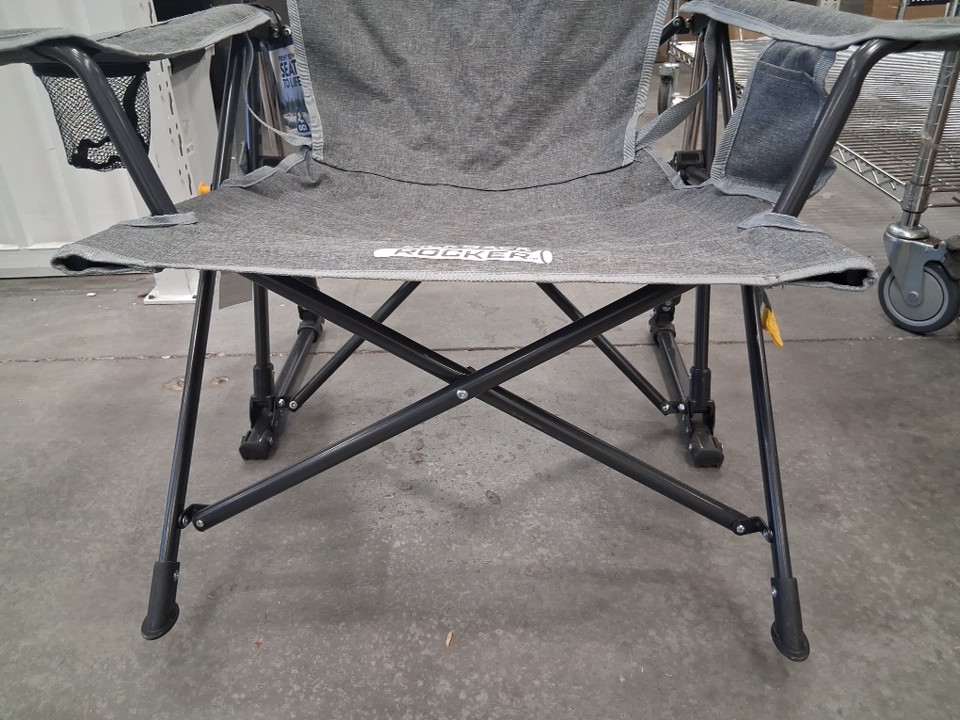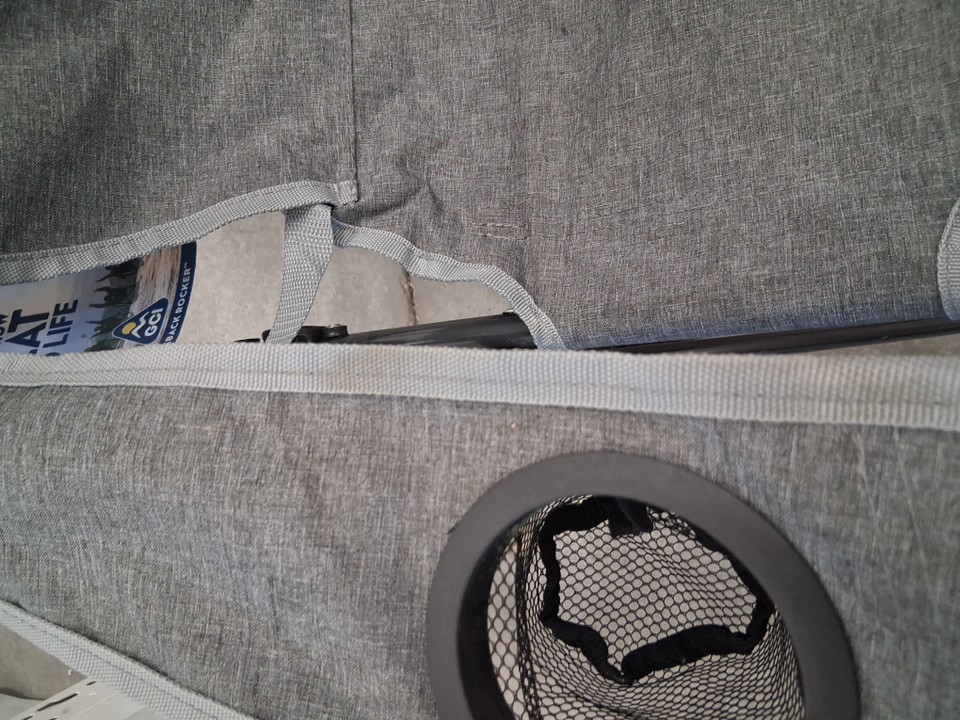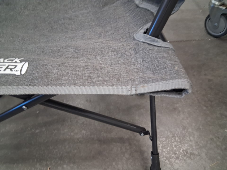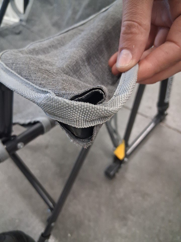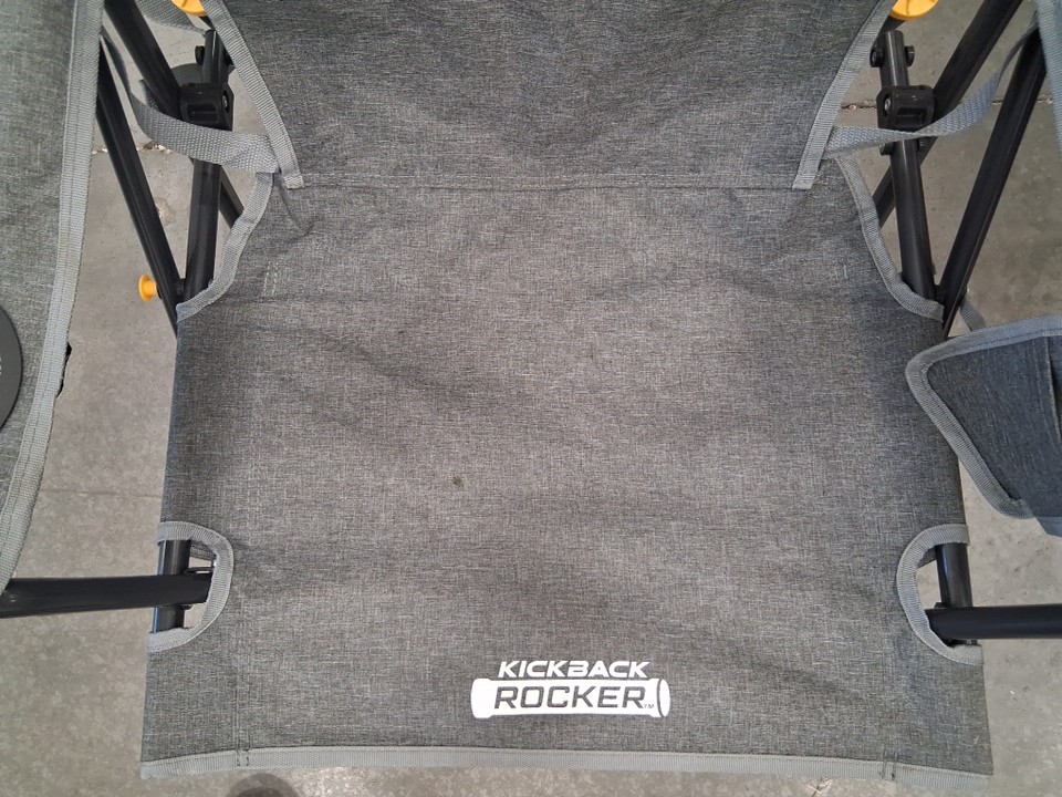Please See Photos: - There are some minor stains on the arms consistent with previous use - There is small hole (See Photos) on the actual seat, that looks might have been caused by ash/fire burning it. - The left side arm has a small tear close to the edge. - The rocking mechanism was tested and seems to be working no problem.