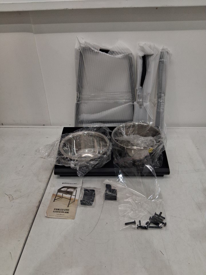 bobbie & laxi elevated dog bowls for large dogs - 15" - black/stainless steel (model: db-3)
