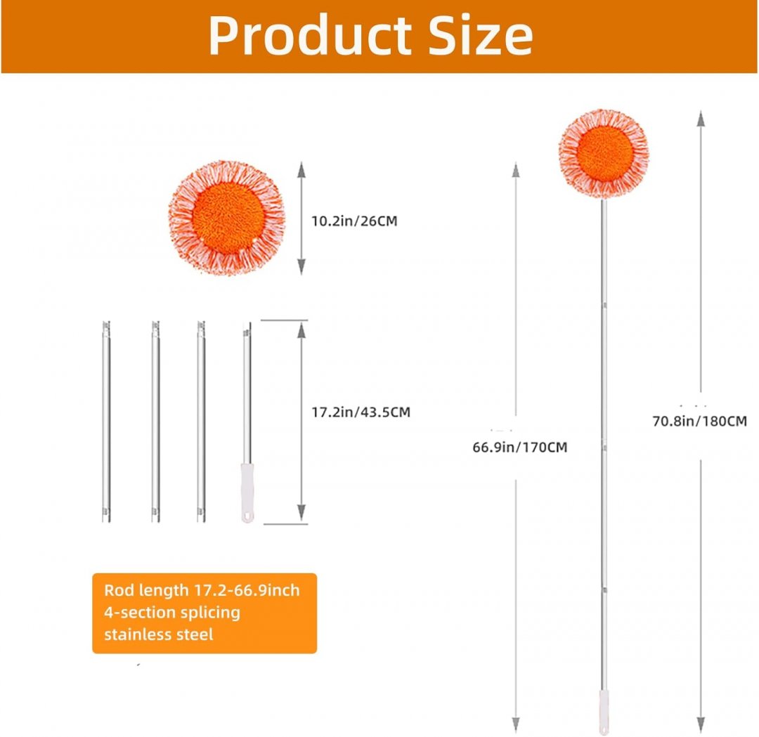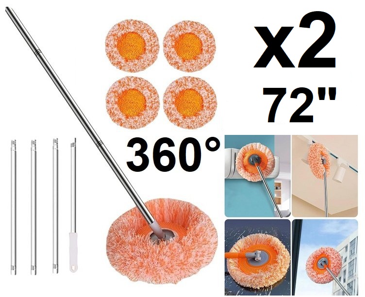 2 Velasko multi-purpose Dust Mop with 360 degree Rotating head and Adjustable Long Handle - 72" - Orange