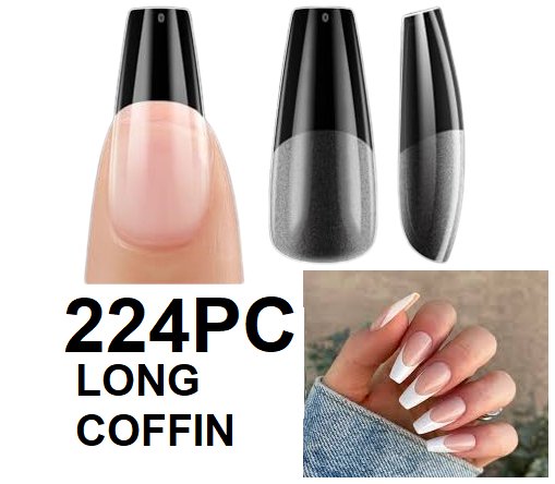 224PC Beetles Tipex Instant Apex Nail Tips WITH HALF MATTE - COFFIN SHAPE