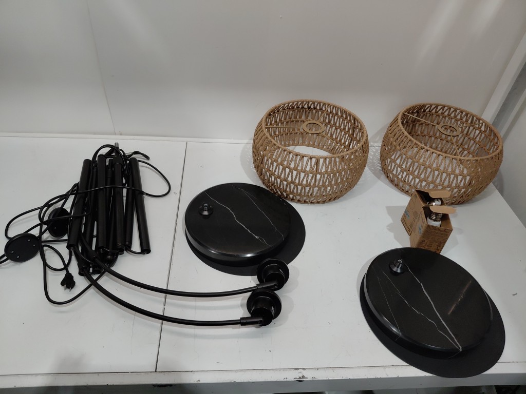 2pk Eyassi Boho Arc Floor Lamp With Rattan & Fabric Shades, 3 Color Temperature, Remote Control & Foot Switch plus "Smart Home Light” App control -3000K-6000K -E26 BULB - 72.8" - BLACK/NATURAL - (MODEL: ‎230407C1)