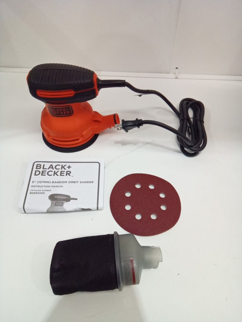 BLACK + DECKER CORDED RANDOM ORBIT SANDER - 5" - 2 AMP / 12000OPM - ORANGE (MODEL: BDER0100)